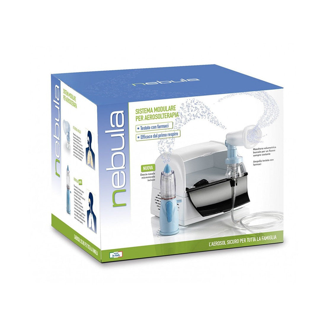 L’aerosol Nebula è un dispositivo medico professionale progettato per l’aerosolterapia completa delle vie respiratorie superiori e inferiori. È dotato di un compressore a pistone potente e silenzioso, che garantisce un’erogazione costante e particelle di dimensioni ottimali per la corretta penetrazione del farmaco (MMAD ≈ 1,9 micron).