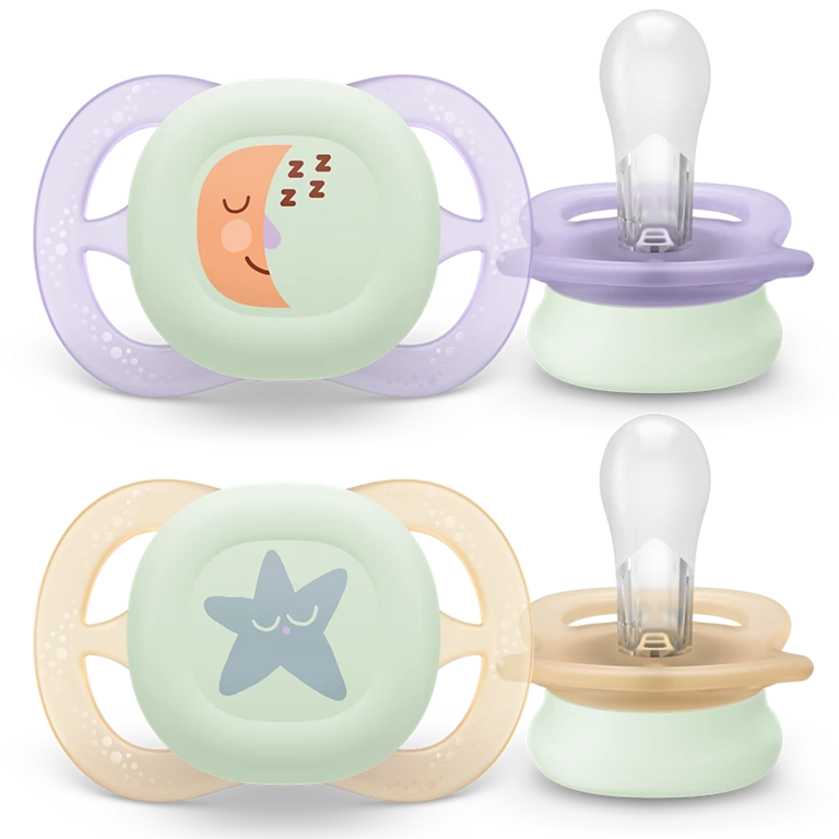 Tranquillità e comfort sin dal primo giorno. Il ciuccio Philips Avent ultra start Nighttime è progettato per adattarsi alla boccuccia del tuo bambino e può essere utilizzato in totale sicurezza fino ai sei mesi di età. Dotato di un cappuccio fluorescente, è facile da trovare anche al buio.