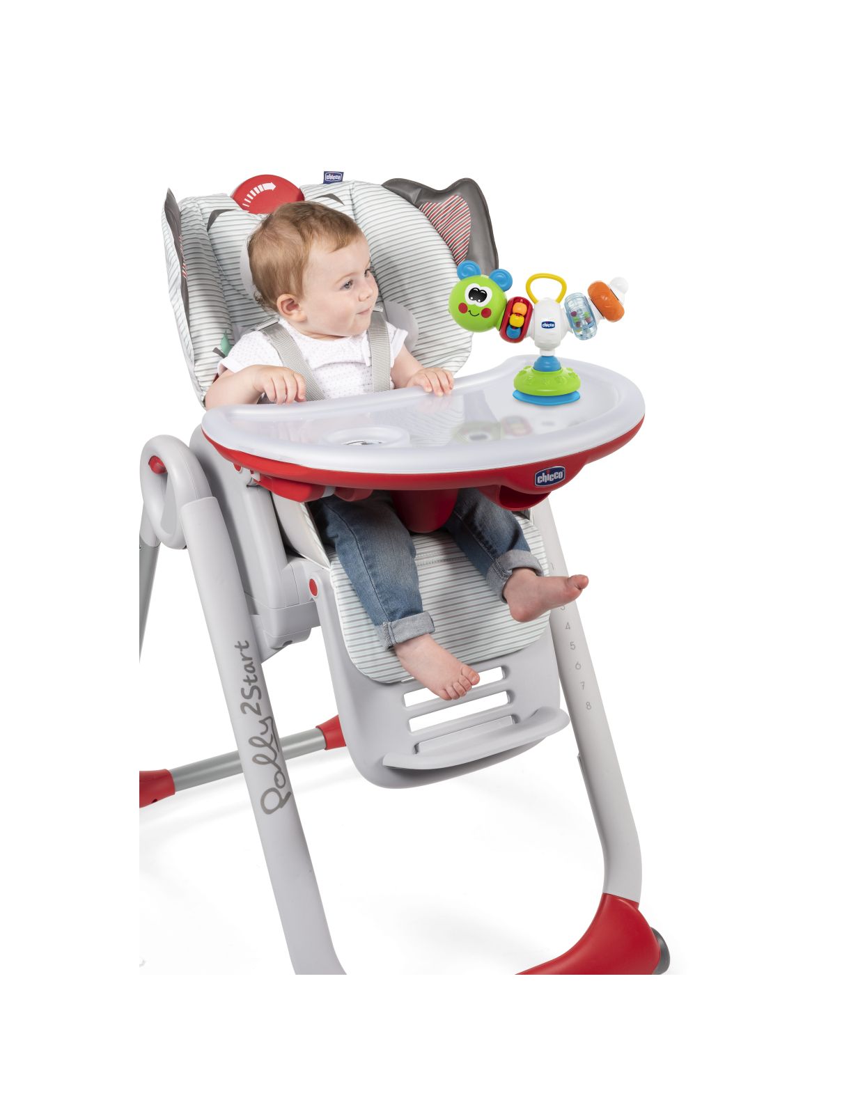 Quando il bruco gira su se stesso le melodie vengono attivate. Il bambino potrà sentire le melodie facendo girare l’anello trasparente con le palline. Bruchino Ballerino intrattiene il bambino con diverse attività:
