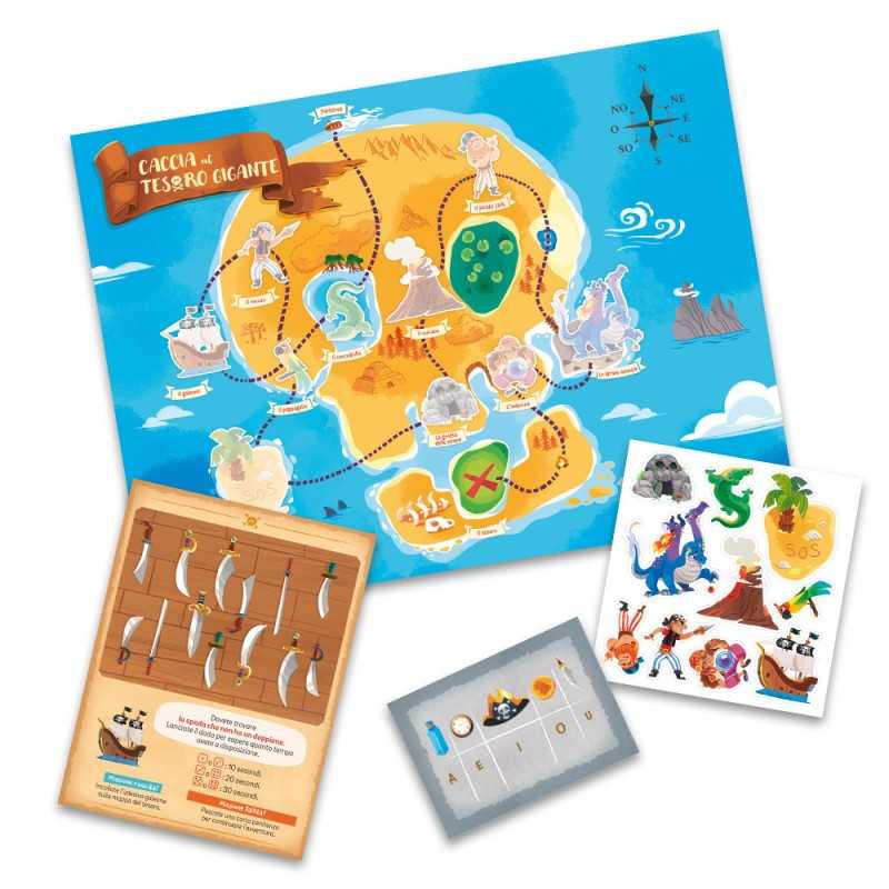 Con Caccia al Tesoro Gigante puoi organizzare in pochi minuti una fantastica avventura a tema pirati, completa di enigmi, indovinelli e sfide da risolvere insieme.