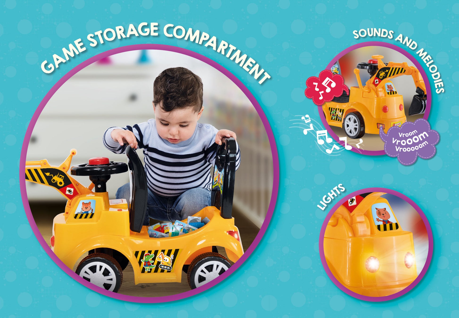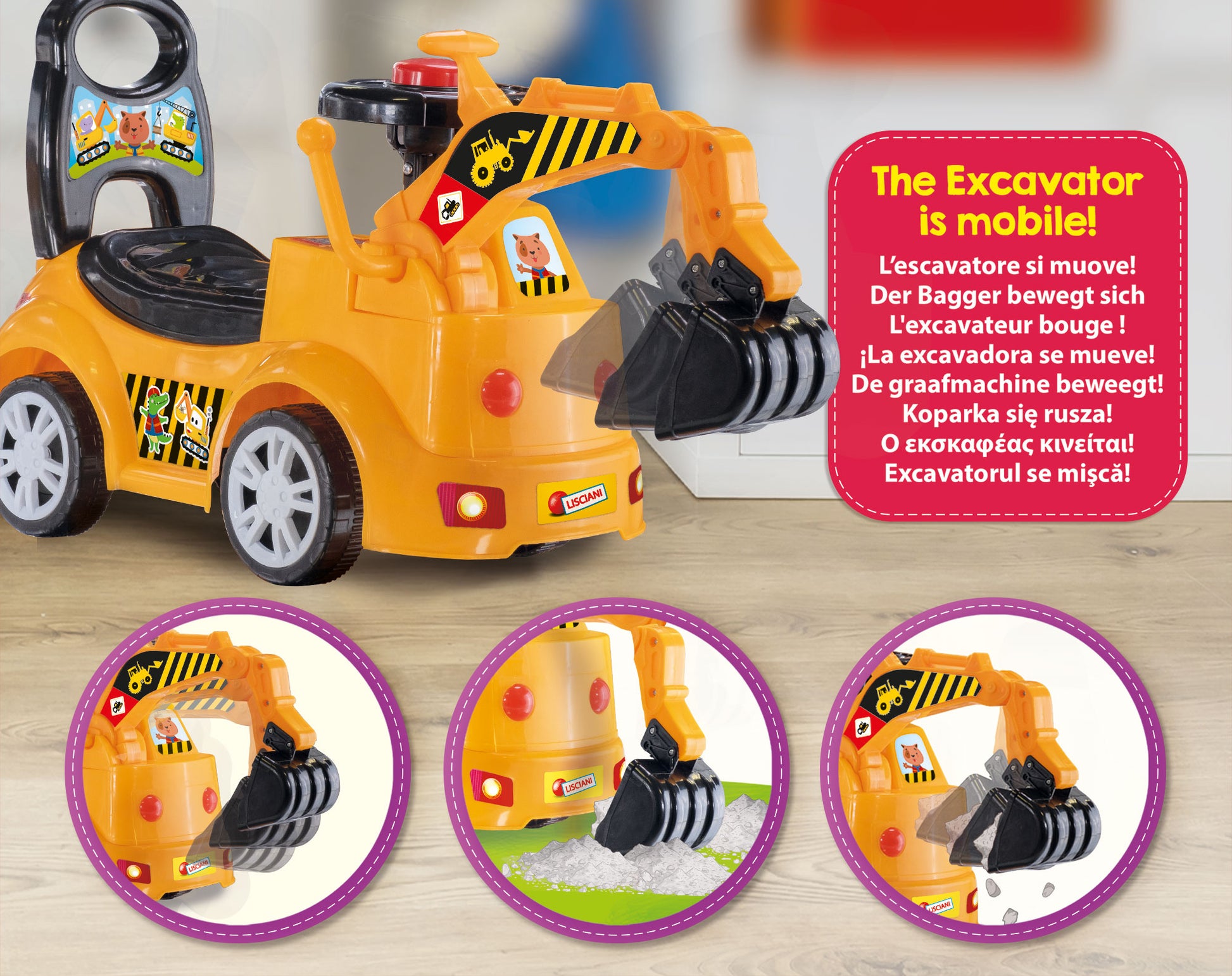 Un'originalissima ruspa cavalcabile e sonora! Robusta e resistente permette anche ai più piccoli di fare tanti divertenti giochi d'imitazione!