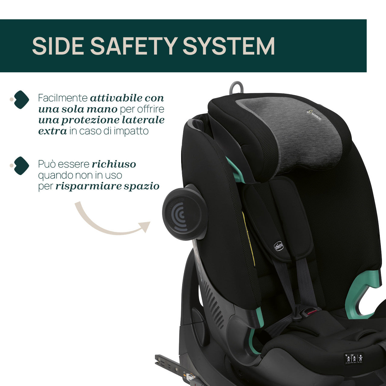 - Inizia con la base rotante i-Size, poi rimuovila dopo 4 anni per passare alla modalità rialzo, offrendo più spazio per le gambe e supportando la crescita ed indipendenza del tuo bambino.