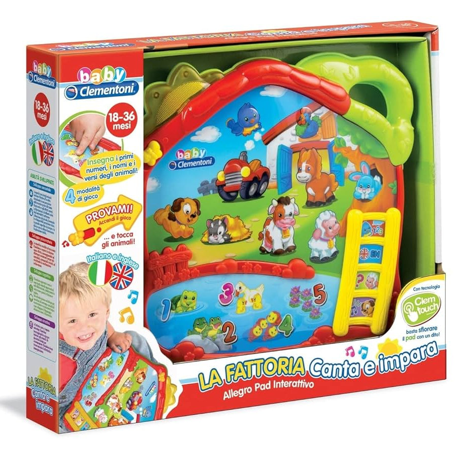 Con La Fattoria Canta e Impara di Clementoni, i bambini scoprono il mondo degli animali in modo divertente e musicale! Un gioco educativo interattivo che, attraverso canzoncine, suoni e parole, aiuta i più piccoli a riconoscere gli animali della fattoria, i loro versi e i primi concetti di linguaggio.