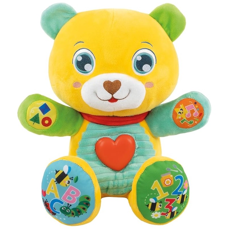 - Toccando i 5 tasti interattivi parla e guida alla scoperta delle prime lettere, dei primi numeri, delle forme e dei colori.