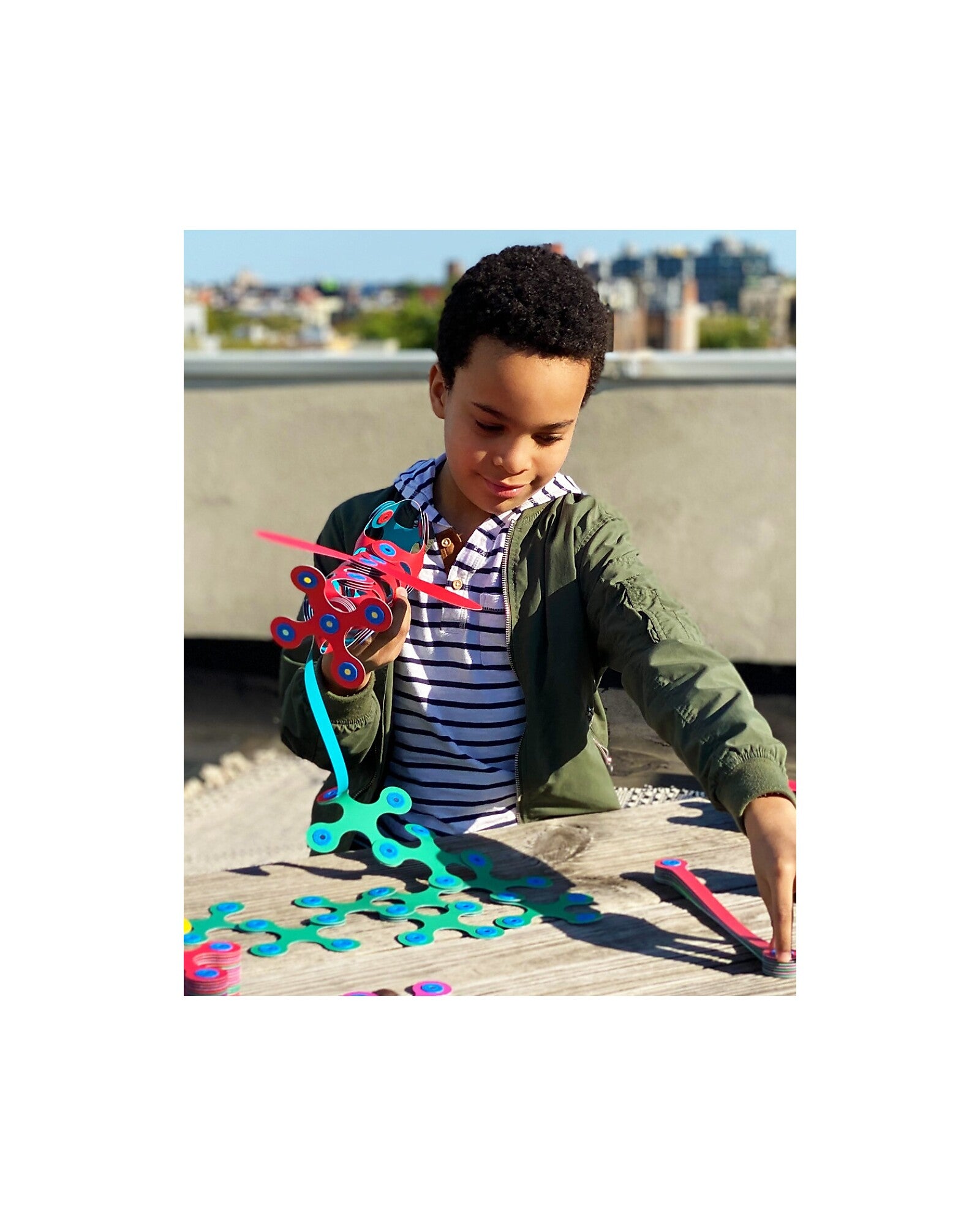 Composto da 42 pezzi magnetici flessibili, permette di creare costruzioni bidimensionali e tridimensionali, creature fantastiche, accessori indossabili e strutture dinamiche grazie ai magneti integrati e agli spinner inclusi.