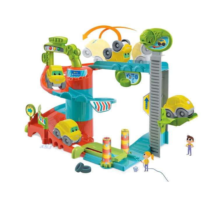 Il Fun Garage Baby Track di Clementoni è un coloratissimo garage interattivo pensato per i più piccoli, che combina gioco meccanico e stimoli educativi per sviluppare curiosità, coordinazione e fantasia.