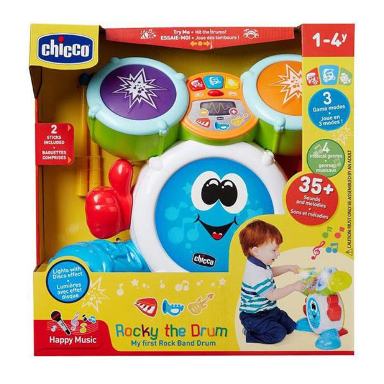 Il set Rock Band Drum di Chicco è un batteria elettronica pensata per i bambini a partire da circa 12-18 mesi fino ai 4 anni. Offre tre modalità di gioco — “libero” per suonare a piacere, “segui le luci” per stimolare attenzione e reazione, “orchestra” per scegliere strumenti e melodie — e quattro generi musicali (rock, rap, jazz e trap) con oltre 30 suoni e 9 canzoni integrate. Include due bacchette con punta in gomma, luci colorate che guidano il bambino e un design stabile e sicuro. È ideale per avviare i piccoli al ritmo, alla coordinazione mano-occhio e al divertimento attivo.