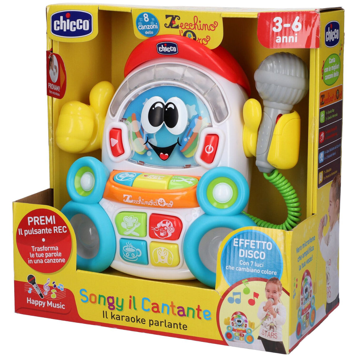 Songy The Singer di Chicco è un microfono karaoke interattivo pensato per bambini dai 3 ai 6 anni che amano cantare e giocare con la musica. Include un microfono rimovibile e un’apparecchiatura con luci LED che creano atmosfera discoteca, permettendo al piccolo di registrare la propria voce e ascoltare il risultato. Offre modalità “libera” per cantare a piacere e modalità “sfida” dove il gioco invita a seguire sequenze e ritmi divertenti. Stimola l’espressività, la coordinazione mano-occhio e la fiducia in se stessi attraverso l’esibizione e il divertimento musicale.