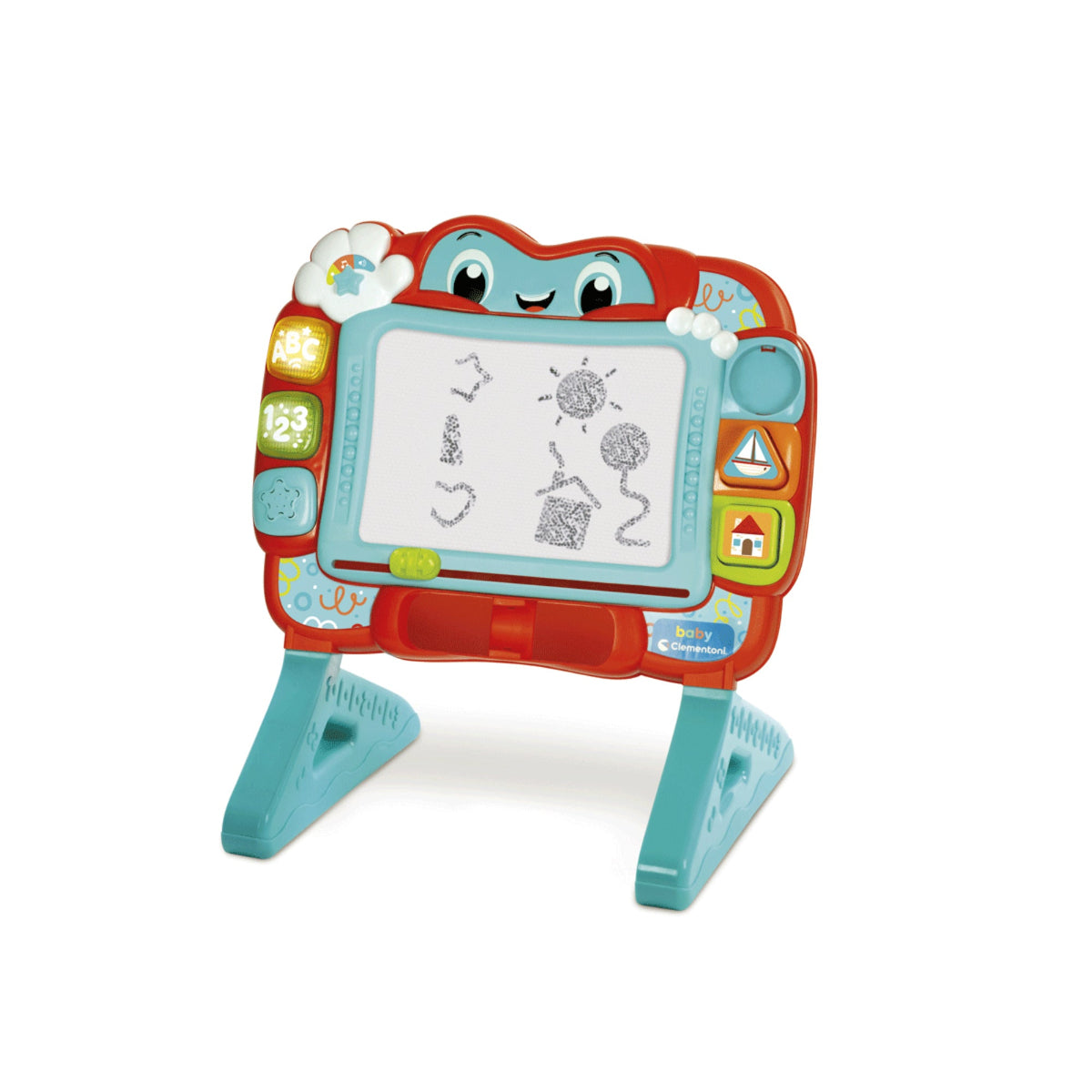 Centro attività 2 in 1 educativo elettronico e lavagna per disegnare, con un approccio graduale al disegno: prima con le formine e poi con la matita.