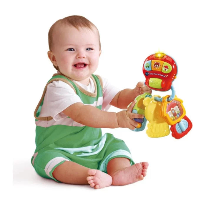 Le Mie Prime Chiavi 3in1 di Chicco sono uno strumento educativo pensato per i più piccoli (0 m+), che unisce attività sensoriali, gioco abituale e apprendimento. Il set presenta tre chiavi dai colori vivaci e texture diverse, ideali per stimolare tatto e presa; ogni chiave attiva suoni, melodie e frasi in italiano e inglese, favorendo lo sviluppo del linguaggio e della comprensione causa-effetto. Il design leggero e facile da afferrare rende questo prodotto perfetto durante la fase della scoperta e del movimento della mano verso l’oggetto.