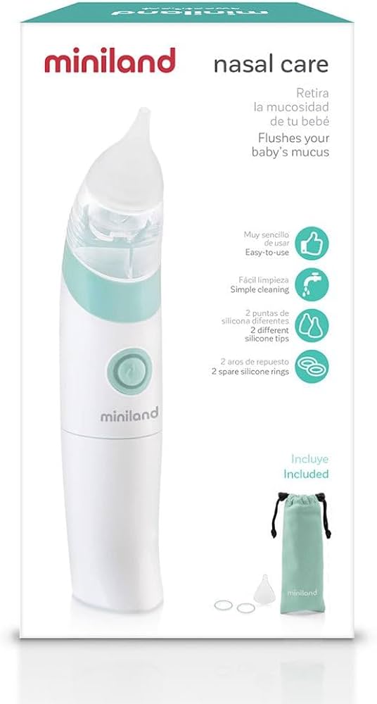 L’Aspiratore Nasale Elettrico Miniland è un dispositivo pratico e sicuro che aiuta a liberare in pochi secondi il nasino del bambino, garantendo una respirazione più facile e serena.