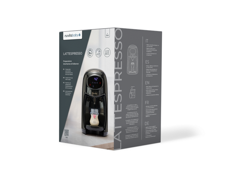 Notti più tranquille e giornate più leggere per te e niente più attese per il tuo bimbo: con Lattespresso in pochi secondi il biberon è pronto, alla temperatura perfetta e senza grumi.