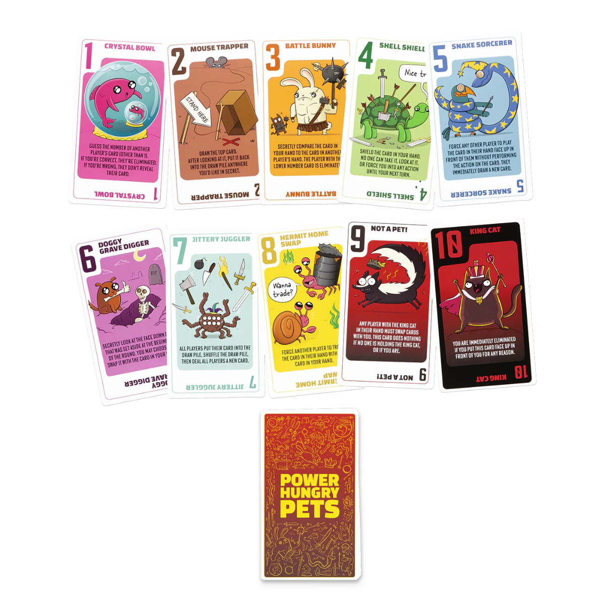 Scopri chi tra i tuoi amici è il più veloce con Power Hungry Pets! In questo gioco di carte frenetico, i giocatori devono sfamare i loro animali affamati il più rapidamente possibile, abbinando correttamente cibo e creature prima degli avversari.