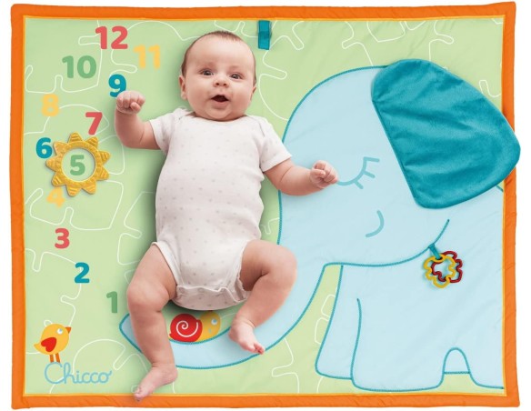 Il Tappeto Complimese Chicco è un tappetino ampio, morbido e colorato pensato per immortalare ogni singolo momento della crescita del tuo bambino durante il primo anno di vita. Ideale sin dalla nascita, permette di sdraiare comodamente il piccolo e utilizzare il sole-segnamese incluso per scattare splendide foto ricordo di ogni nuovo mese. Realizzato con tessuto riciclato al 65% e orecchio in velour riciclato, il tappetino presenta un piccolo fruscio che ne stimola l’attenzione. Include inoltre due pendenti a forma di foglia in plastica riciclata all’80% per attività tattili e un anello-sole in plastica riciclata all’80% con rilievo e diverse texture, ideali per la sensibilità tattile. Misura 90 × 72 cm e può essere lavato in lavatrice, garantendo praticità per i genitori.