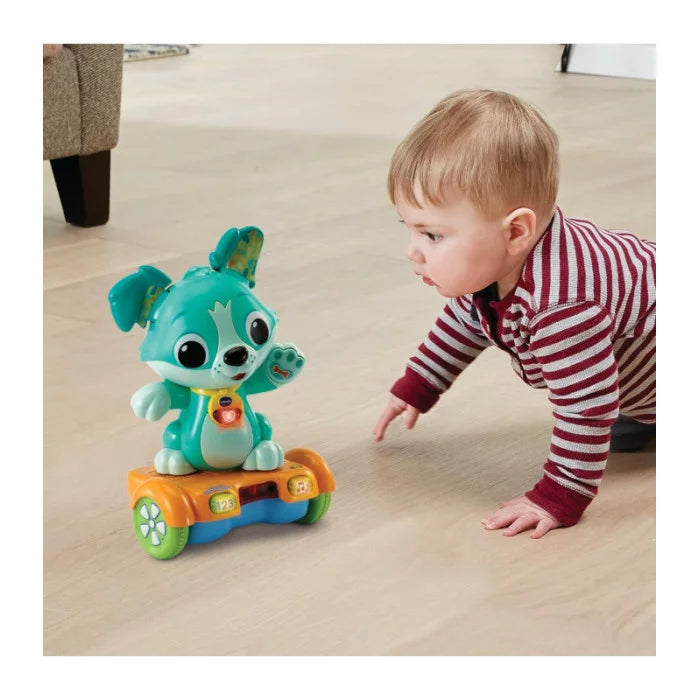 Lord, il simpatico cucciolo, si muove sul suo hoverboard con effetti luminosi e sonori.