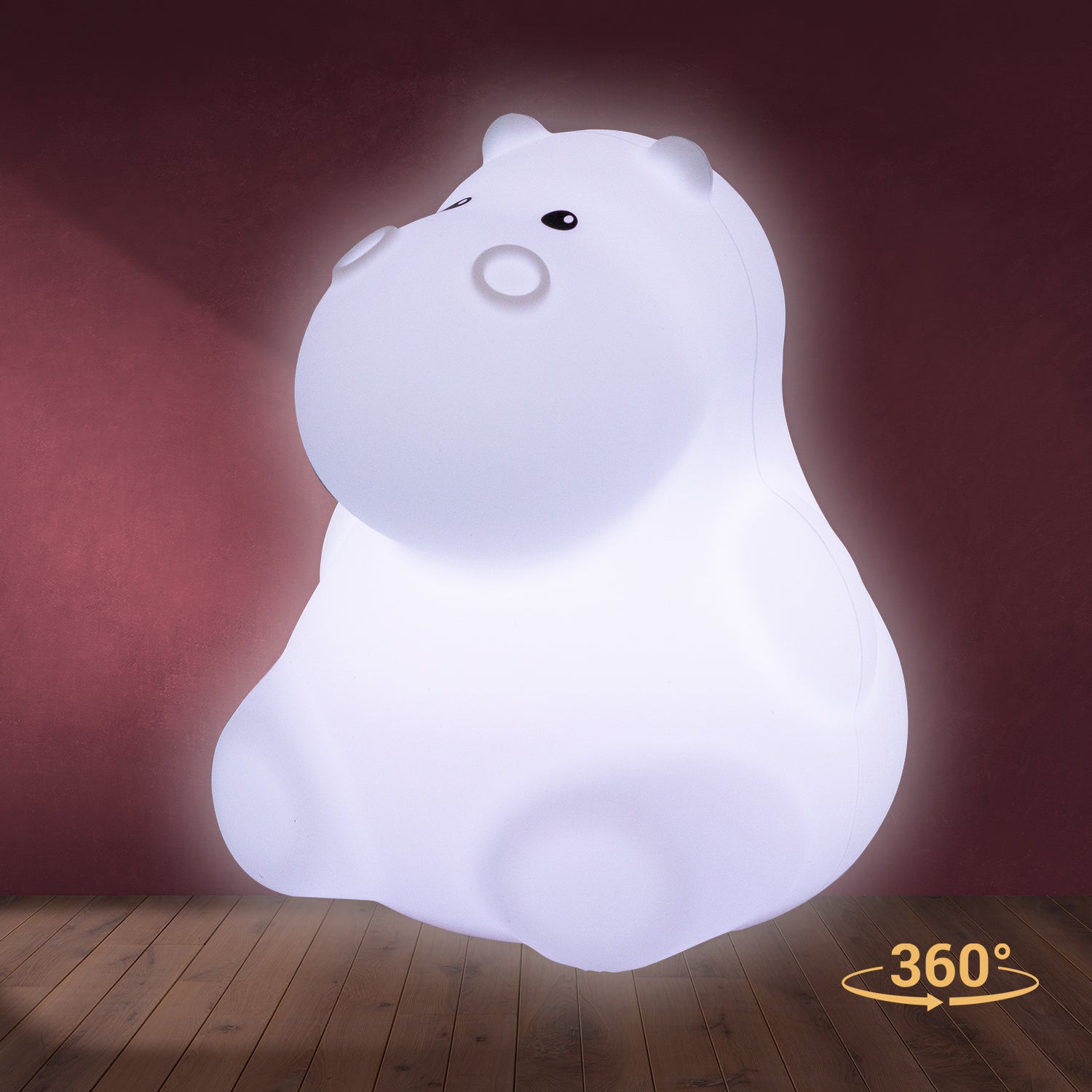 Il corpo della luce notturna è realizzato in morbido silicone di alta qualità, garantito senza ftalati, senza BPA e lavabile. La parte superiore è staccabile dalla base: la scatola luminosa. Questa è realizzata in plastica ABS, adatta a tutte le età. Le variazioni di luce sono ottenute in 3 modalità e 8 colori diversi. Il cambio di modalità avviene toccando la luce notturna o utilizzando il telecomando in dotazione. La luce notturna è alimentata a batteria. La ricarica avviene tramite il cavo USB in dotazione (tipo A <-> tipo C), collegandolo a un dispositivo USB o a un caricabatterie universale (tipo caricabatterie per telefoni cellulari). Il telecomando (batteria inclusa) consente l'accesso a funzioni aggiuntive, ad esempio la funzione timer (15, 30 o 60 min).
